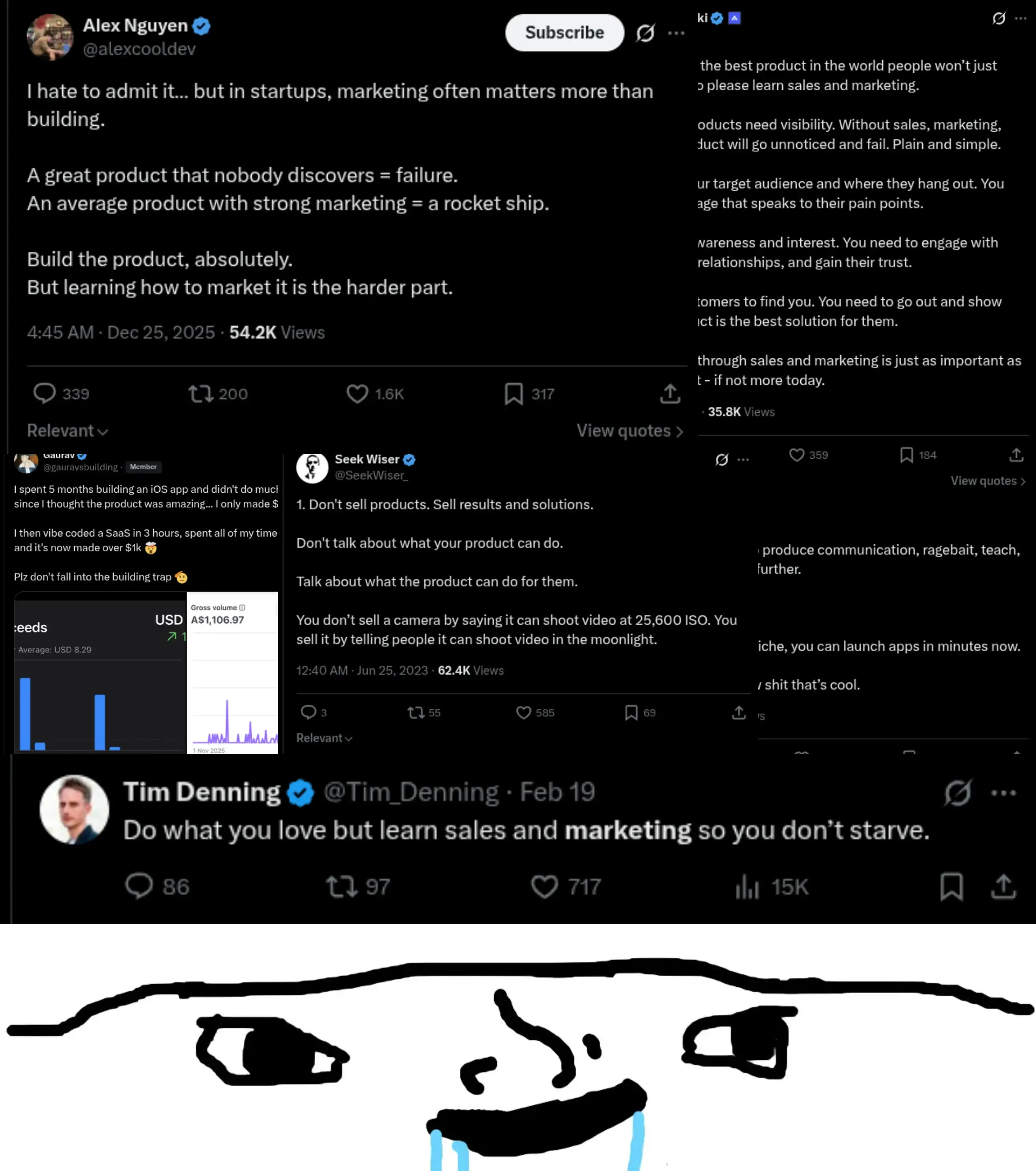 Everyone in startups has heard the advice: “don’t tunnel vision on product, make sure you do marketing.” If advice were a horse, that one would have been beaten dead a decade ago. Some version of it appears on my X feed every single day.